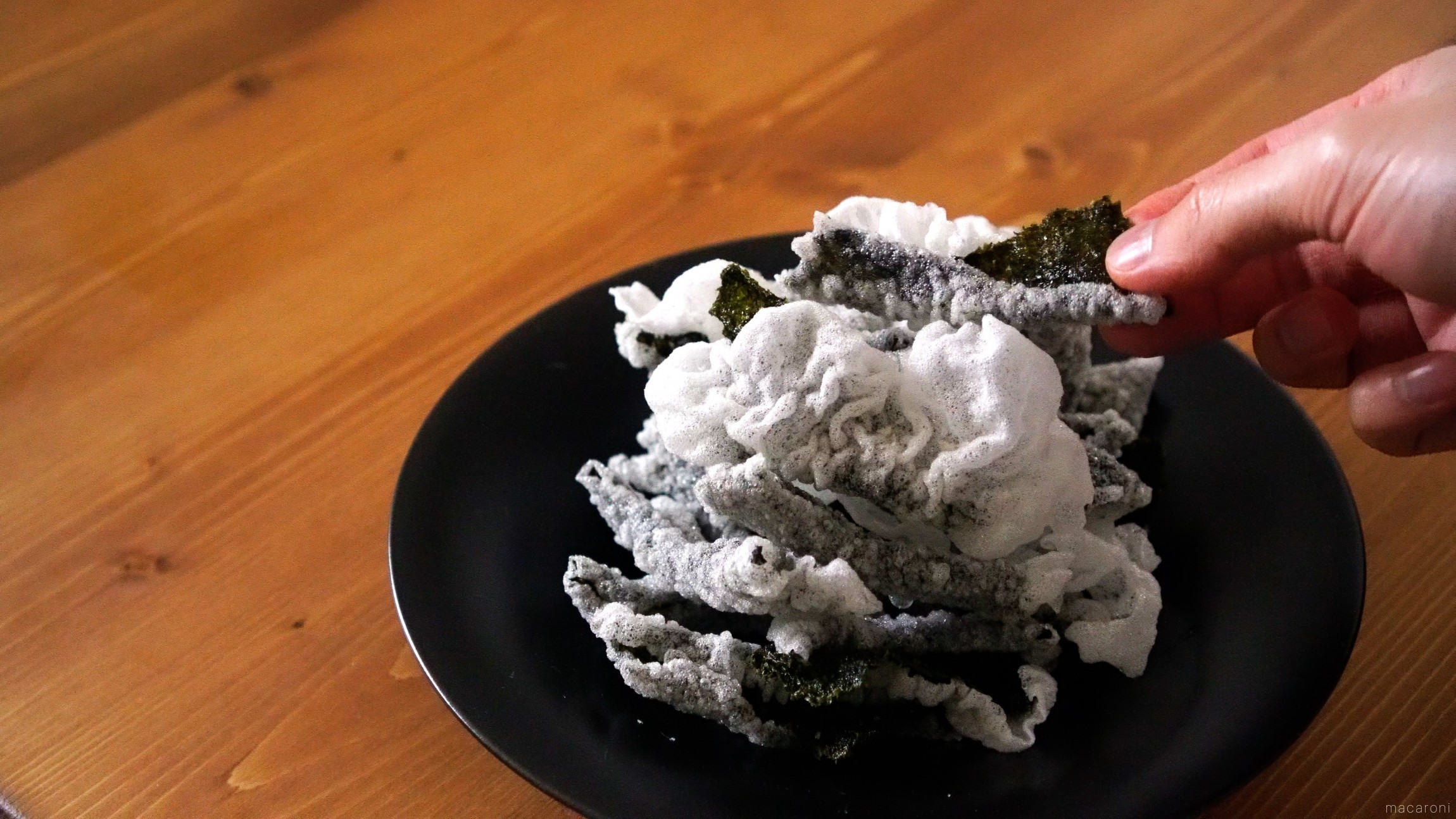 キムブガクとは、簡単に言うと「韓国海苔とライスペーパーを合わせて揚げるおつまみ」です。
