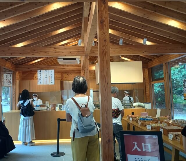 最初は判官さまを探していたのでこちらの福レ餅は知らなかったのですが、観光客でにぎわっている「神宮茶屋」を発見。