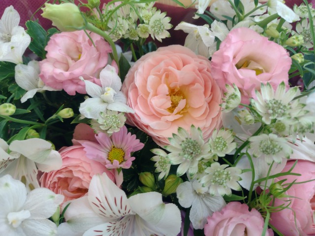 控えめだけど、素敵な色遣いのフラワーアレンジメントでした。