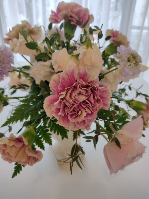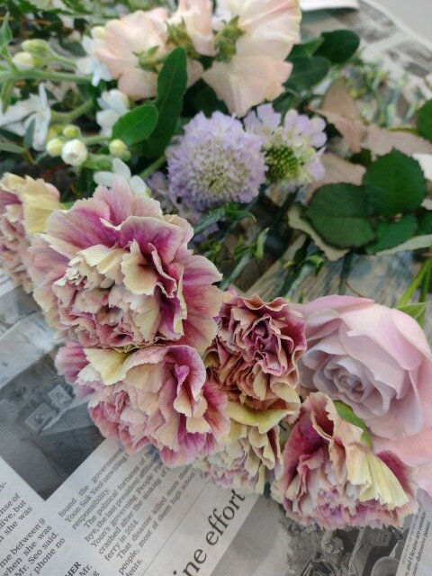 カーネーションって強い色のイメージがあったのですが、この日のカーネーションはバイカラーでおしゃれ。